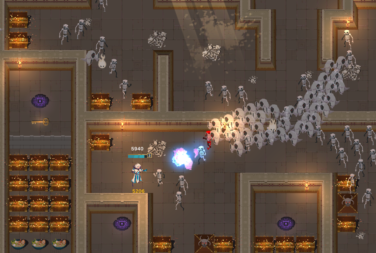 During my internship from June to August 2022, I worked on a project codenamed 'Gauntlet 109' – a remake of a classic retro game. Inheriting an undocumented code base, our small team decided to restart the project from scratch. After studying the original game design documents and understanding the creative director’s vision, we refactored the architecture and reproduced six months of work in just two weeks. We implemented the game’s controller and basic gameplay loop, developed character mechanics for the hero 'Sphinx' and two enemies, programmed AI and collectables, and built a level editor that runs inside the game with full controller support. To allow players to build levels, we created a custom file format (.glvl) and designed a dynamic UI system for menus and interactions. In the final rush we integrated environment sprites, animations, lights and FX, producing a polished prototype ready to present to investors.